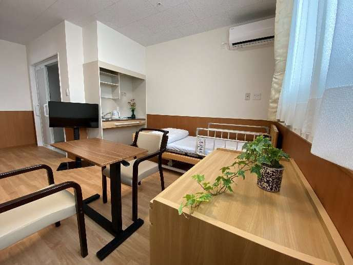 - ご家族の方も個室で一緒に泊まることができ、食事介護などの見守りができます。専門的な看護介護は職員が行います。